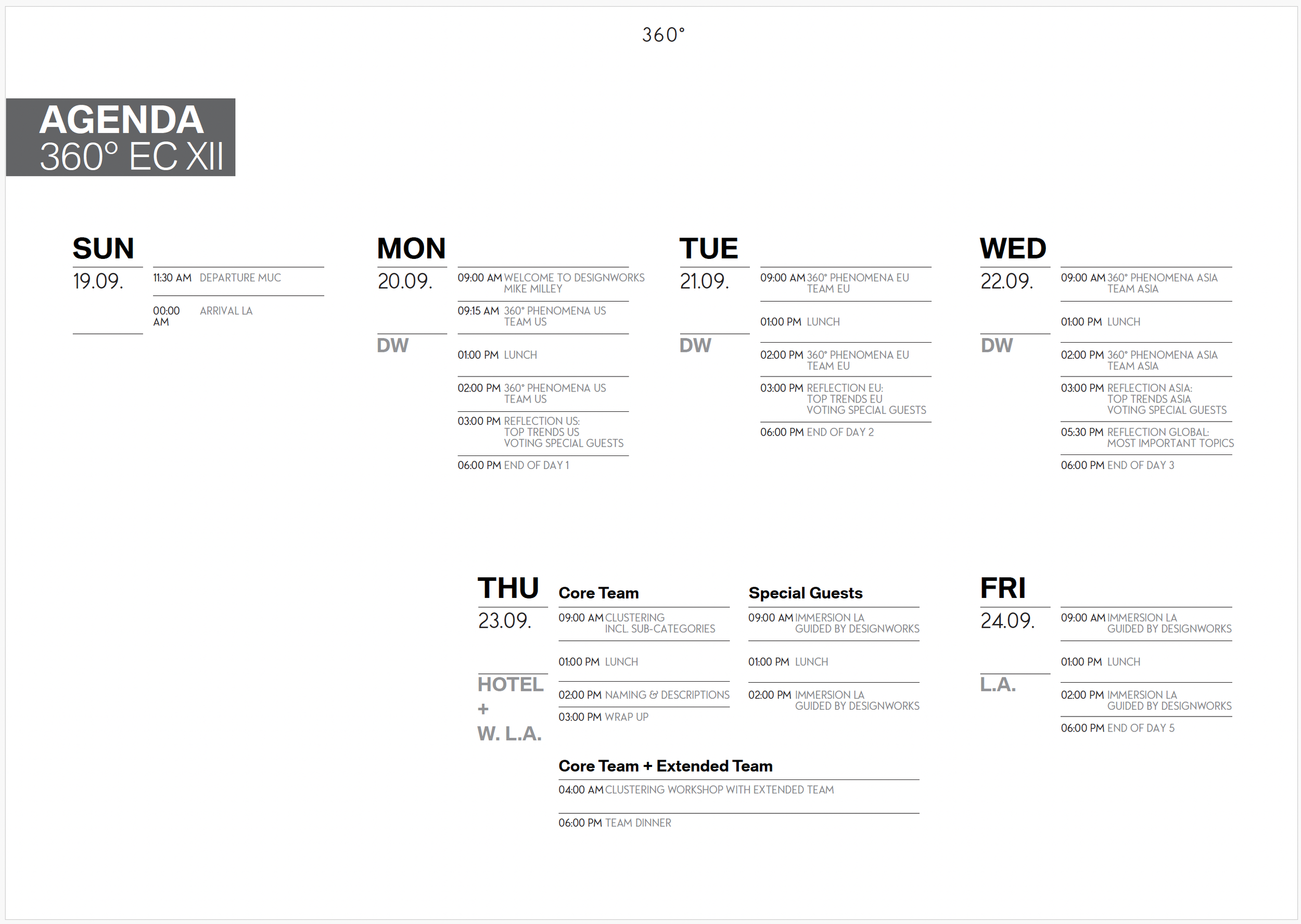 360 Trend Workshop agenda