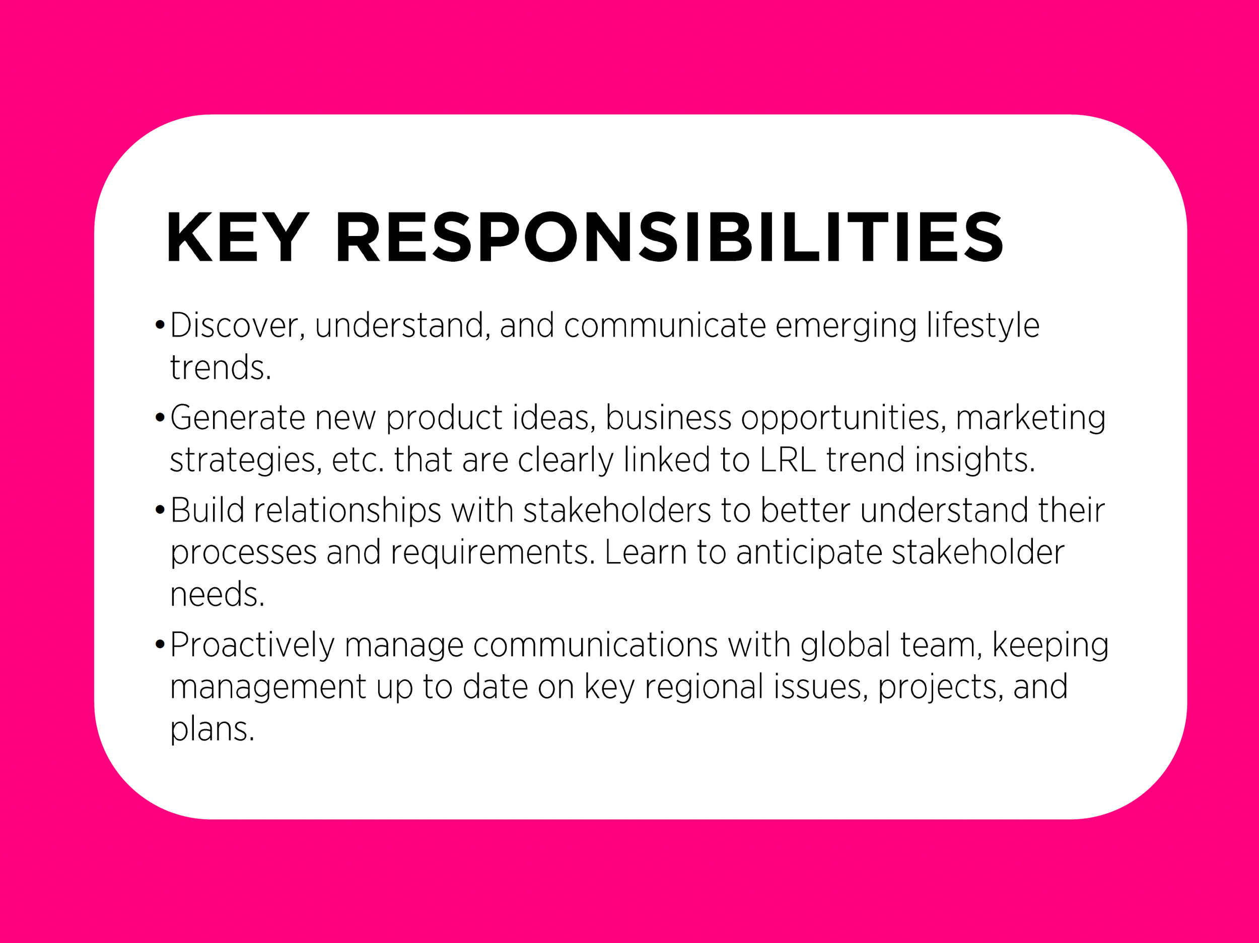 Deliver innovation opportunities for product development, design, and marketing at regional and global scales