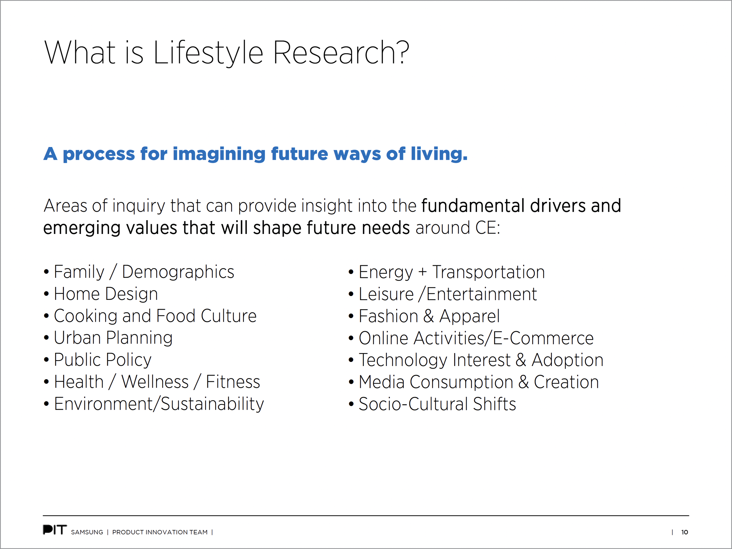 Create Samsung’s Lifestyle Research Lab, defining its mission, vision, tools, processes, and organization